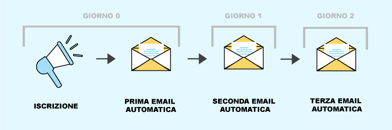 - …E infine che queste persone ricevano delle email automatiche, pianificate e testate in anticipo, che con il passare del tempo li trasformeranno in clienti;