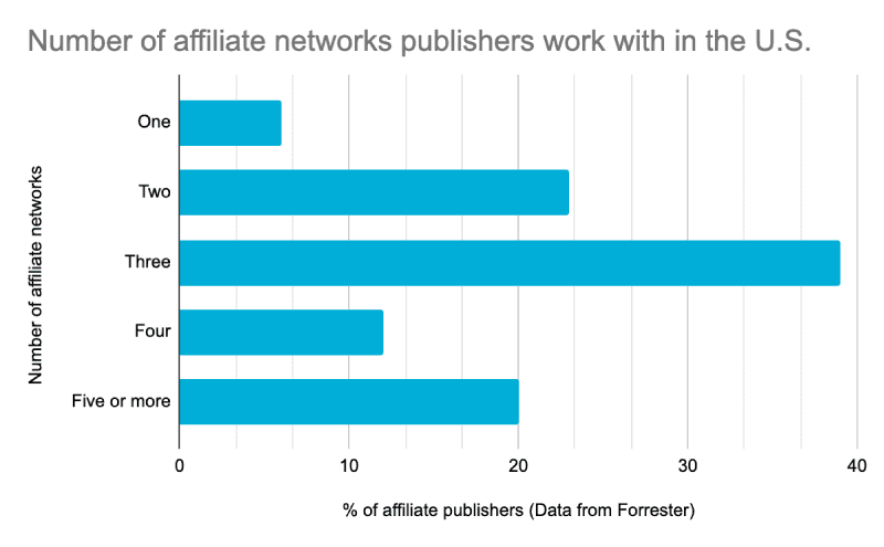 Pensa che secondo il Forrester Report, il 71% degli affiliati negli Stati Uniti lavora con 3 o più affiliate network (solo il 6% ne utilizza solo 1):