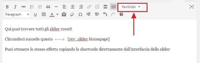 Come ti ho scritto in precedenza usare il tuo slider su WordPress è semplicissimo: un comodo pulsante nell’editor ti consentirà di inserire lo slider che preferisci ( ti ricordo che puoi creare più slider).